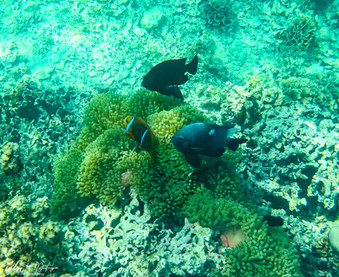 We found snorkeling from the beach at the Coral Gardens a beautiful location on the island. While snorkeling we encountered Giant clams, Orangefin anemonefish, and butterflyfish. Huahine’s Coral Garden is located on the edge of the pass that separates the main island from Motu Mahare. There is a fairly strong current and entering from the beach is rough on the feet so water shoes are needed. The snack bar at the Coral Gardens is a nice place to eat right on the beach. It is affordable and great food but closes at 2:00 every day so go for lunch!