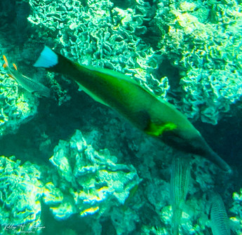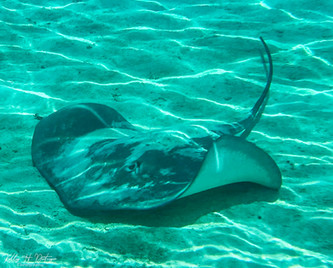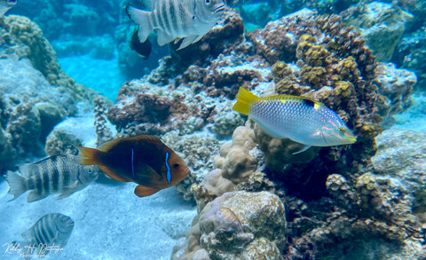 Manta Rays were the underwater creature we were most excited to see this year. I read about a location on the island where you can get in from shore and swim out to see them without going on a tour. Pointe Ta’ihi allows you to encounter these majestic creatures by entering the water from Bora Bora’s main island’s shore. Manta rays congregate here around a “cleaning station.” A cleaning station is a reef where the rays are cleaned by small wrasse. Point Ta'ihi is difficult to find if you are the first people at the site, but once the morning progresses, more and more people make their way out to the area where you get into the water. You need a car or scooter to get to the location because it is 20 minutes for more from Vaitape. There is a small pull out for two to three cars for parking right where you get in the water. See the map below for the location to enter the water and where to swim.